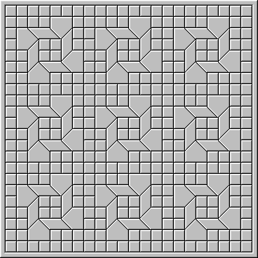 | This intriguing pattern has little pinwheel tiles at regular intervals, with warped tiles all around them. These boards look simple enough to play and they are, just be careful when you get close to the pinwheel tiles. |