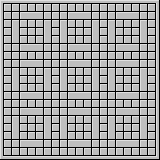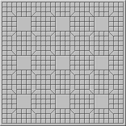 | This grid features some really BIG squares amongst many little ones, and a few skewed squares just to up the ante that much more. Each giant square on this board touches 20, yes, twenty other tiles, so don't be surprised when you start seeing those numbers you only ever looked at on the "Adjust Colors" screen! |